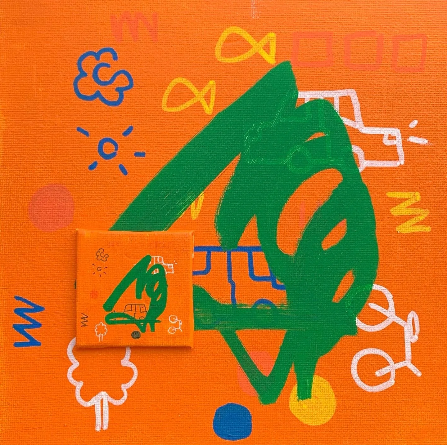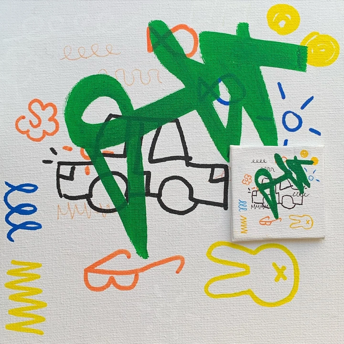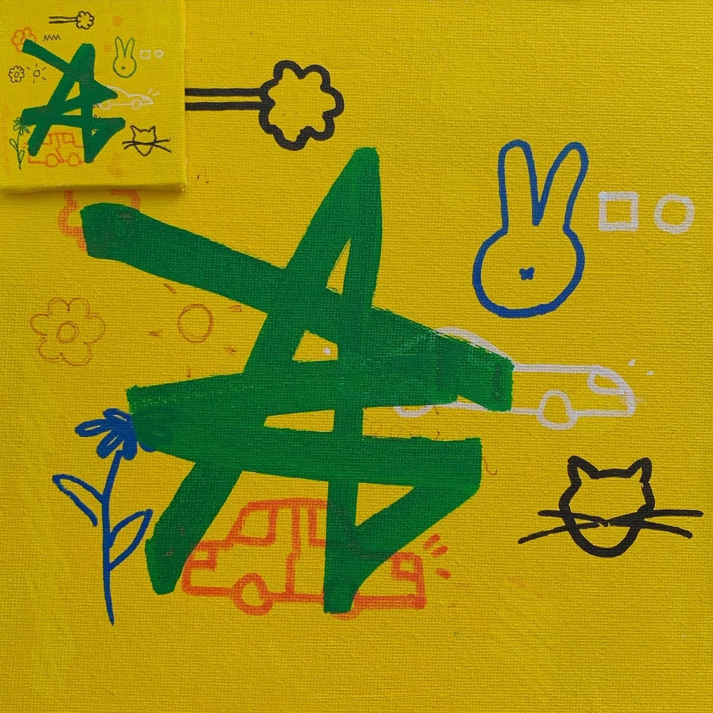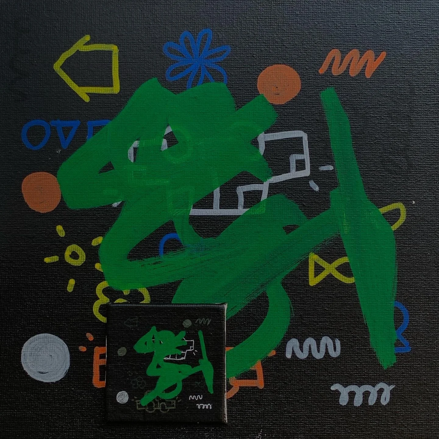 Daaruit is een kleine serie is ontstaan van vijf werkjes van 20 bij 20 voor mezelf en