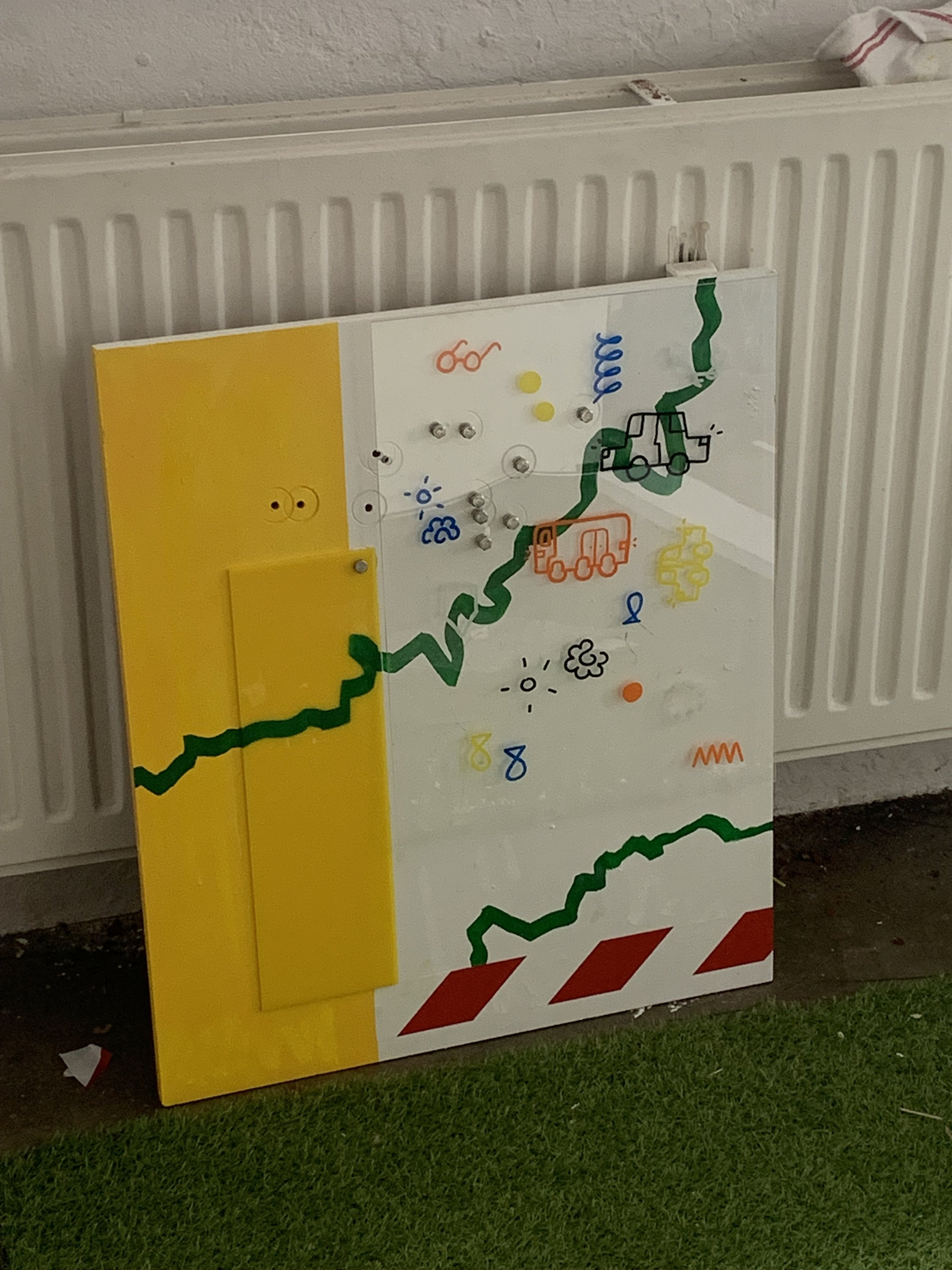 Acryl op bubbelwrap met lijsten of op hout met kunststofplaat bevestigd met bouten en moeren